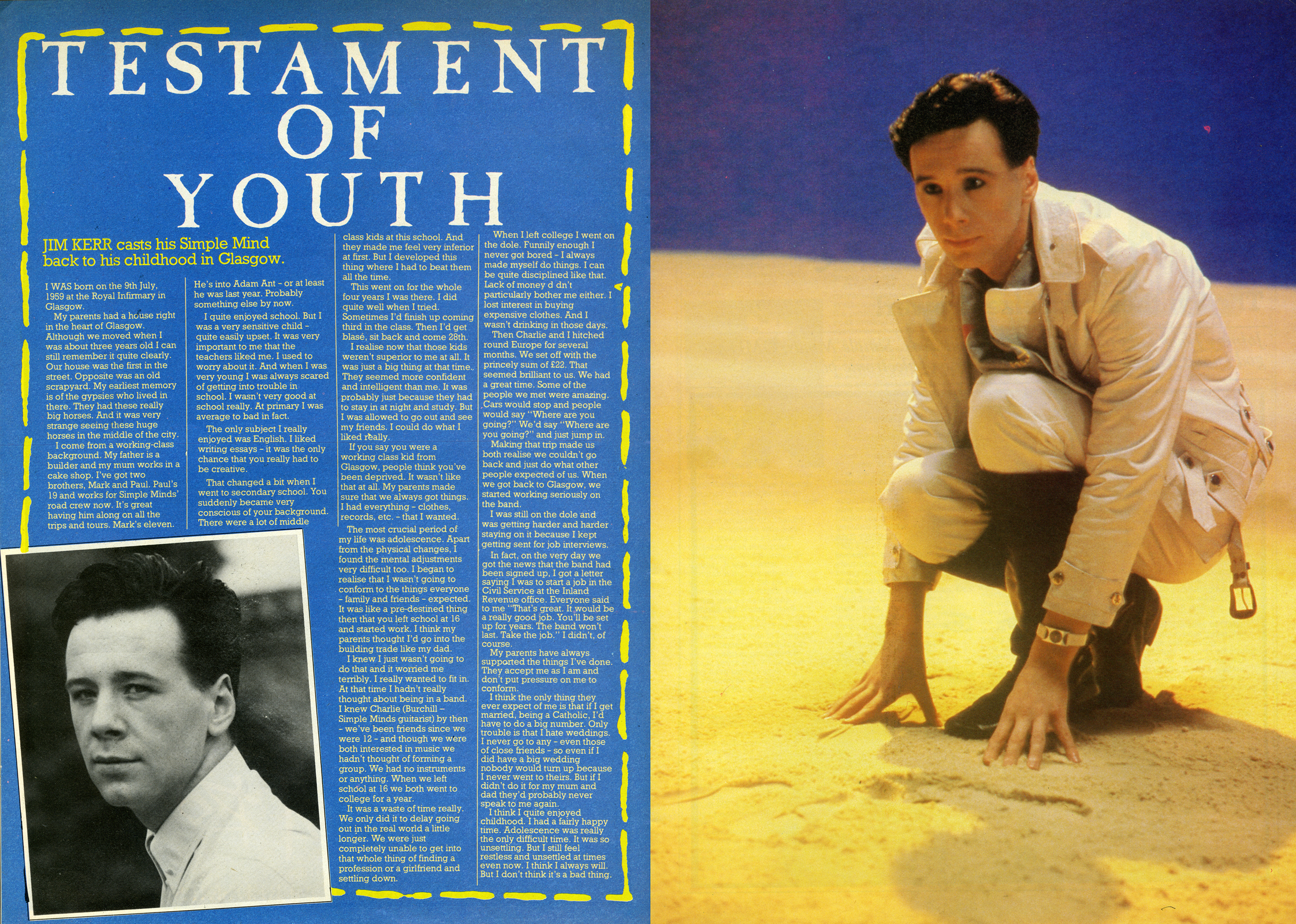 Jim Kerr’s mum worked in a cake shop as he was growing up in the heart of Glasgow. Like Simon, Jim admitted to being a very sensitive child. ‘It was very important to me that the teachers liked me at primary school. I used to worry about it and scared of getting into trouble.’