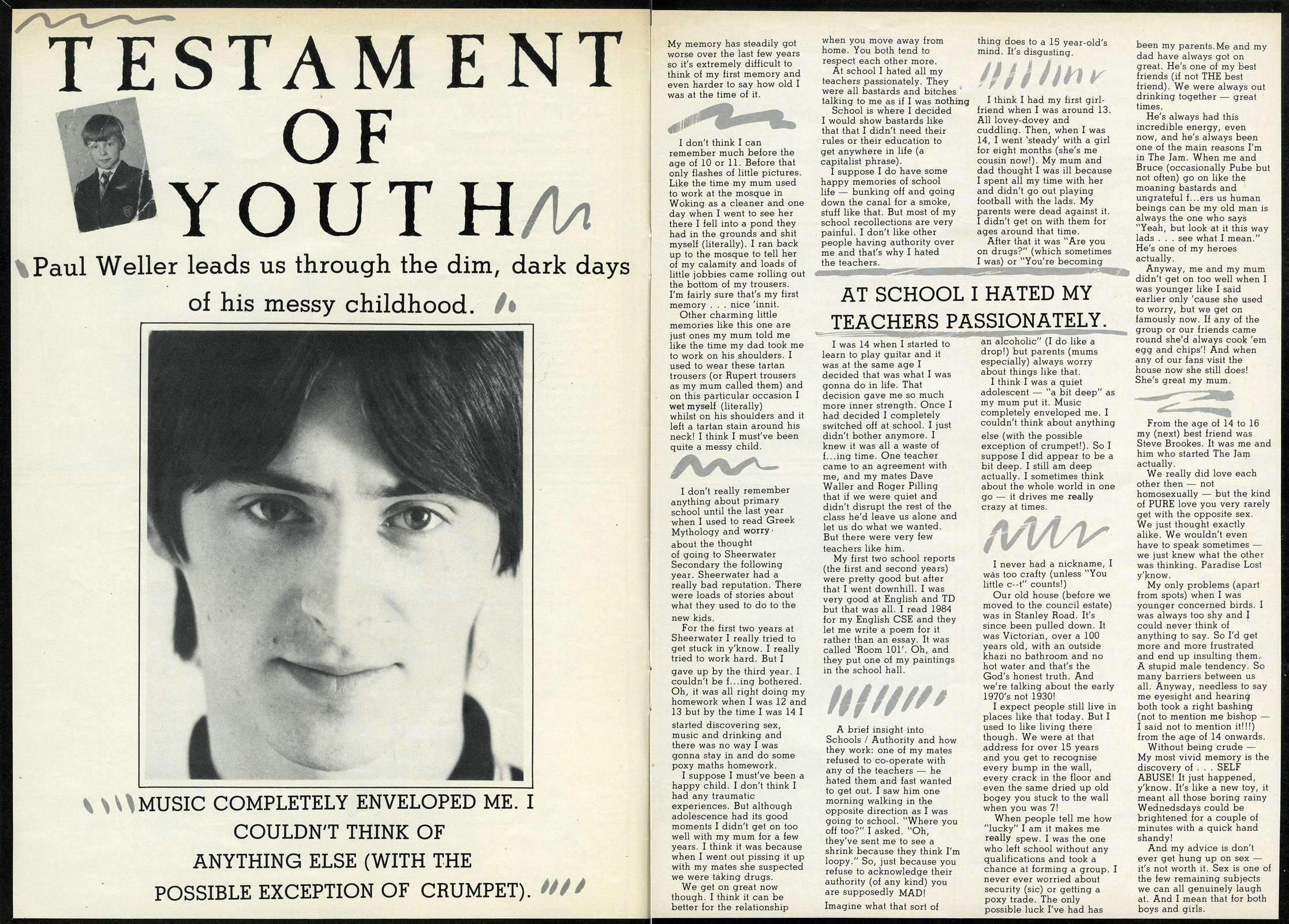 Paul Weller’s childhood was the exact opposite of Simon’s. His mum worked as a cleaner in a Woking mosque and when he went to visit her he fell in the pond and, ‘I shit myself, literally.’ He hated his teachers with a passion and that’s when he decided he would show the bastards he didn’t need their rules.