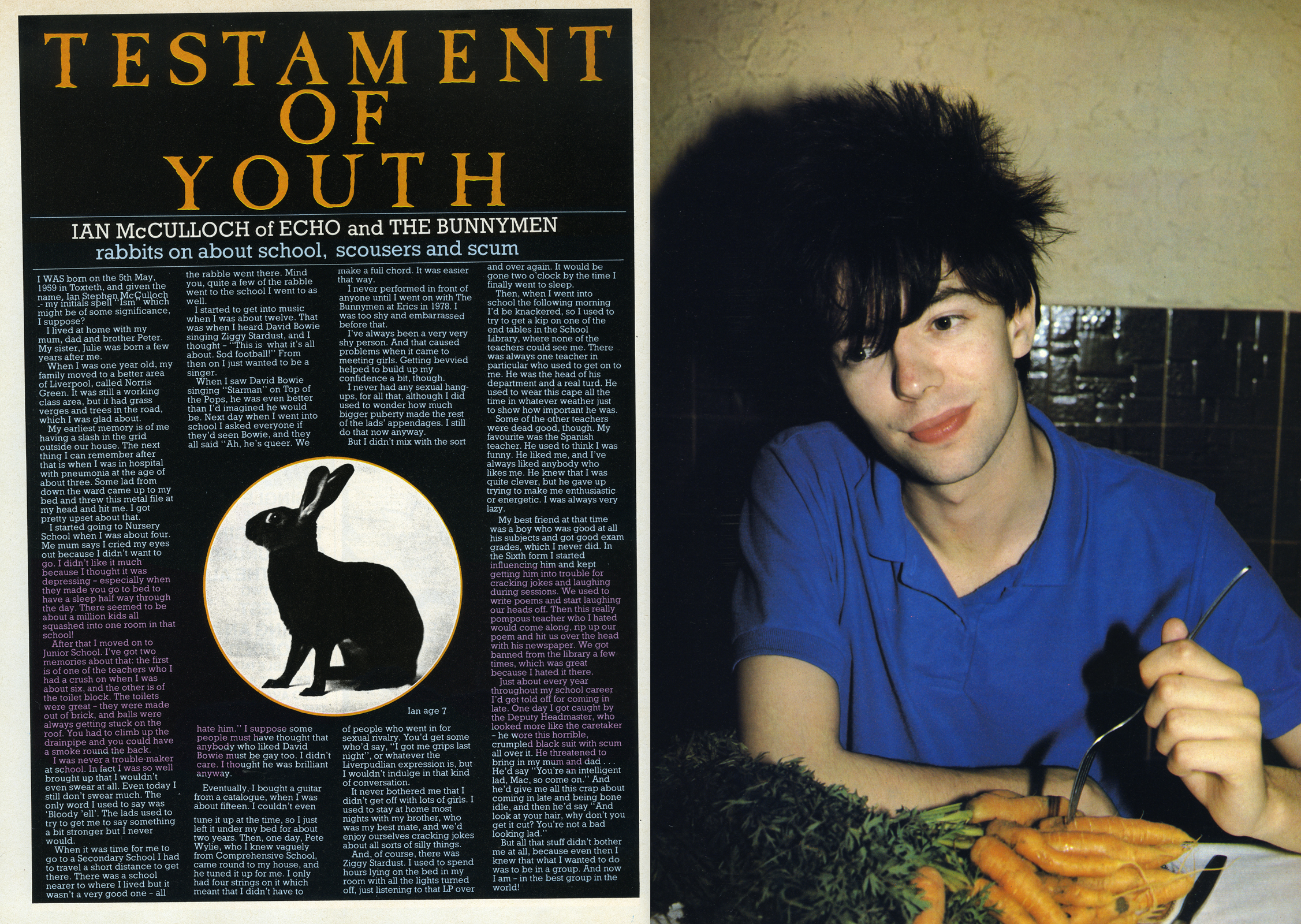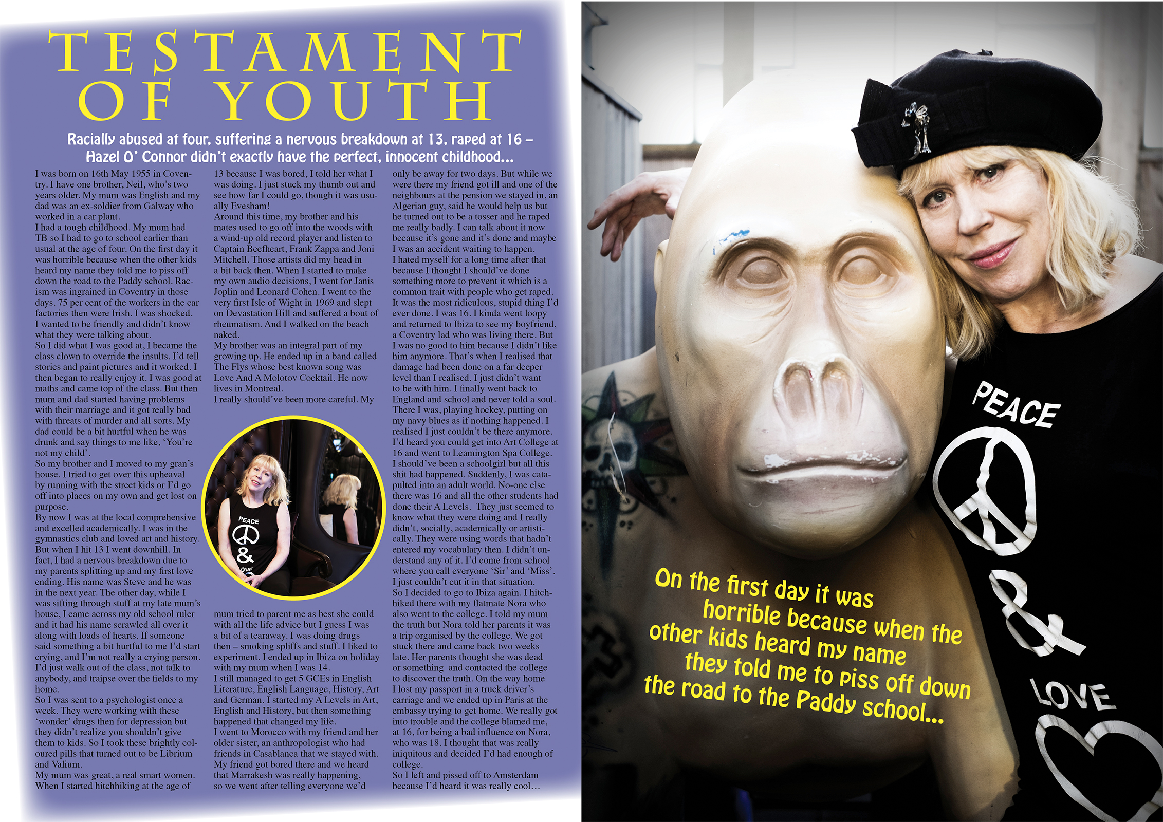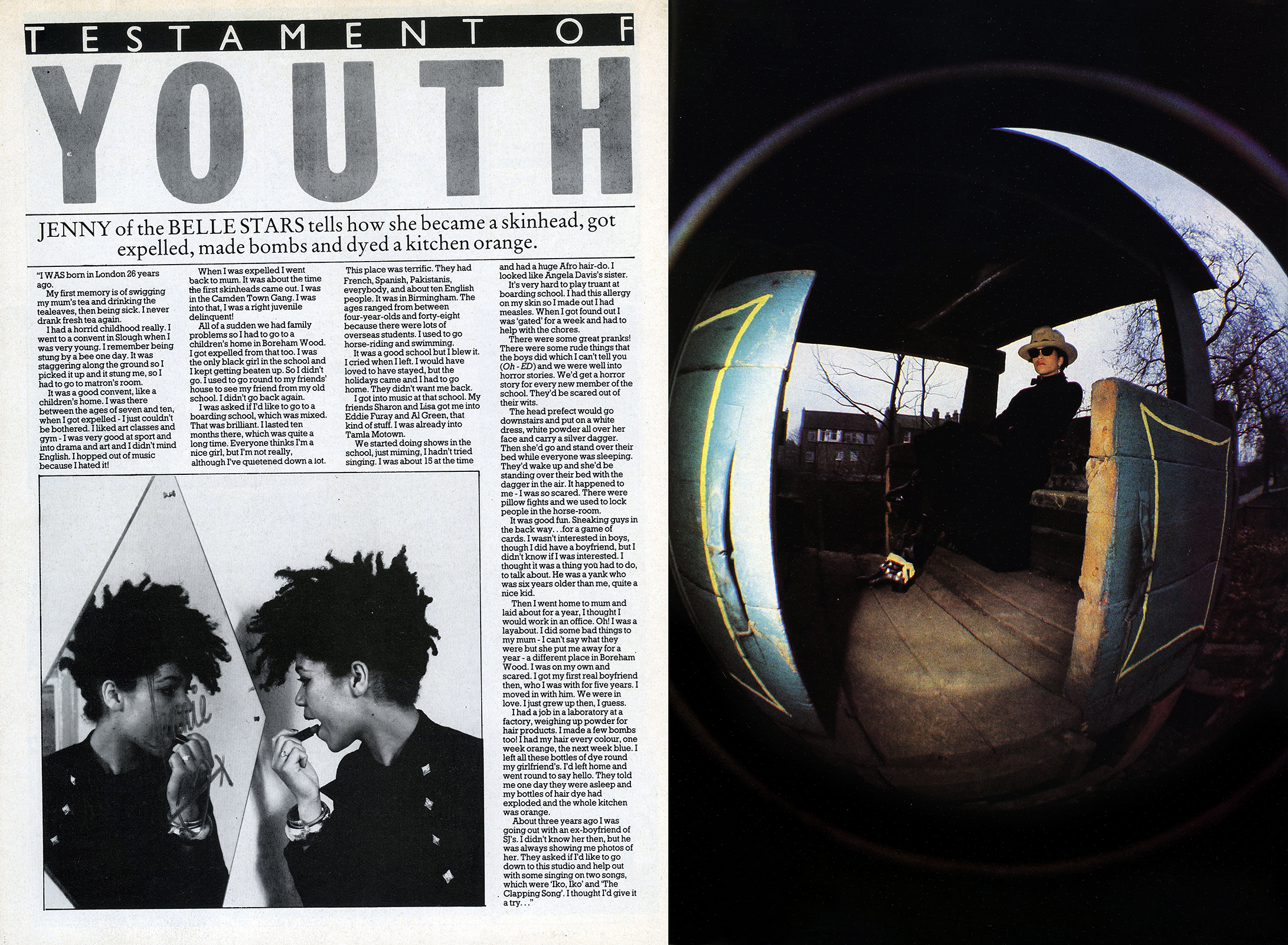 Hazel O’Connor is one of our new Testaments Of Youth. And what a youth! She packed in several lifetimes of experience in a few short years and it’s an absorbing read. Ian McCulloch told us in Issue 21 that he used to spend hours alone in his room listening to Ziggy Stardust over and over again until past 2am. ‘When I went to school the following morning I’d be knackered.’ In Issue 29, Jenny of the Belle Stars was the only black girl in her north London school – ‘And I kept getting beaten up. So I didn’t go…’